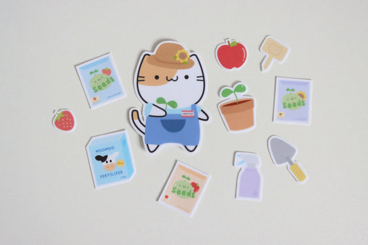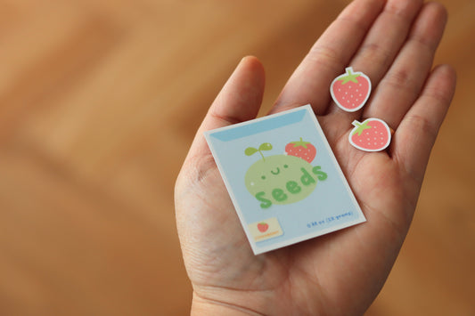 Gardening Seeds Sticker Set - Apple, Strawberry and Sunflower - Vinyl